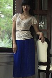 Chân váy xanh nuoc bien dài xếp ly 1cm