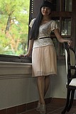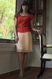 Chân váy kem da xếp ly 1cm